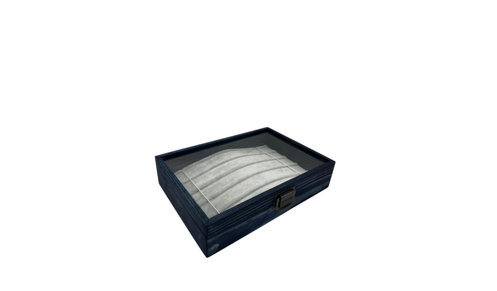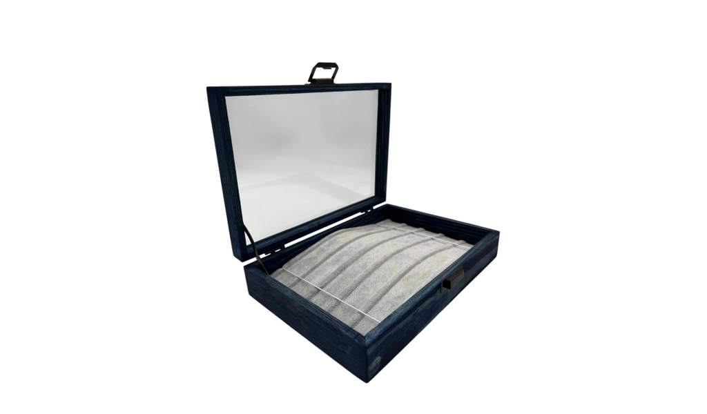Ahşap El Boyaması Çift Renk 17x24 Cm Cam Kapak Yastıklı Takı Standı