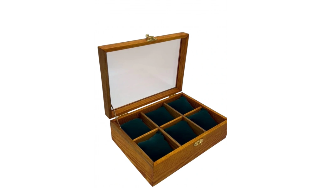 Ahşap El Boyaması Çift Renk 17x24 Cm Cam Kapak Yastıklı Takı Standı 6 Adet Yastık Ürün Kullanımı İçin Uygundur