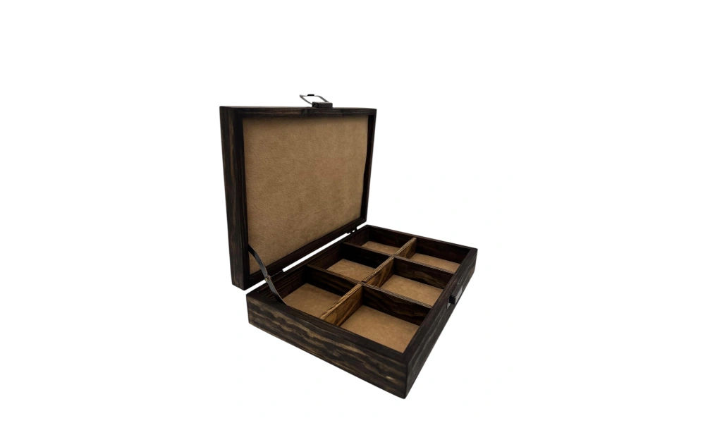 Ahşap El Boyaması Çift Renk 17x24 Cm Deri Kapak 6 Bölmeli Takı Standı