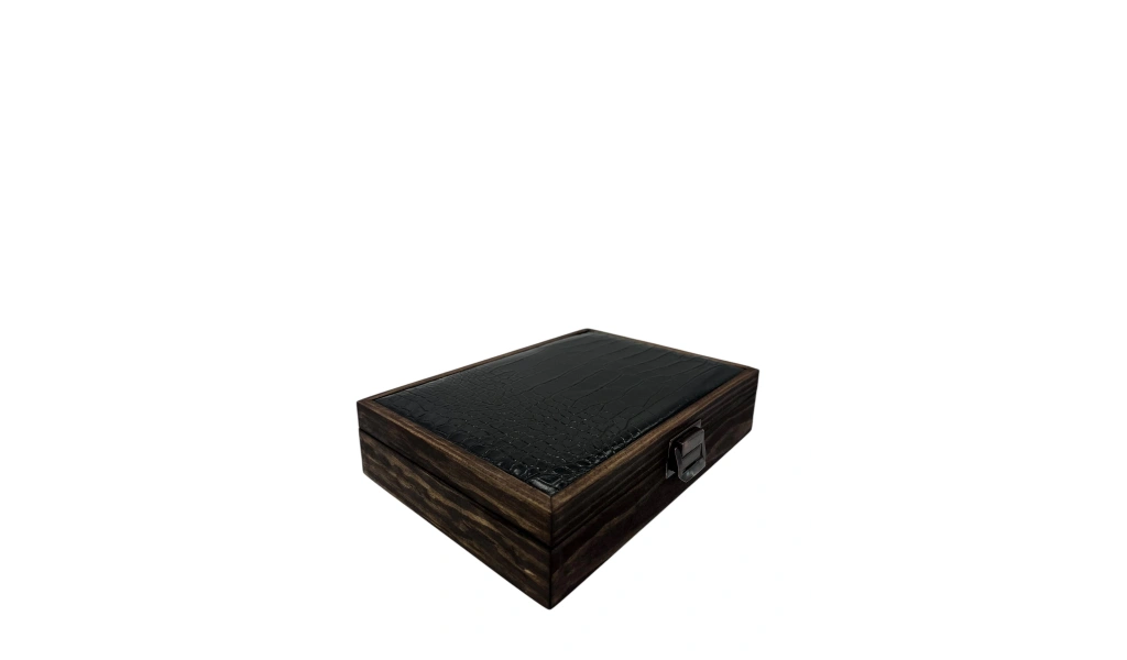Ahşap El Boyaması Çift Renk 17x24 Cm Deri Kapak Set Takı Standı