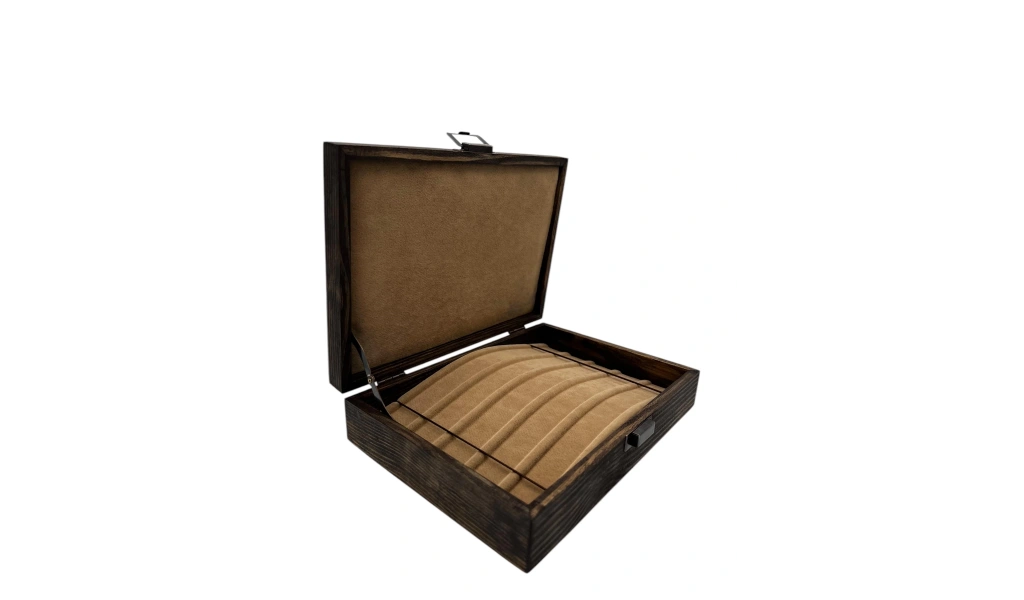 Ahşap El Boyaması Çift Renk 17x24 Cm Deri Kapak Yasttıklı Takı Standı