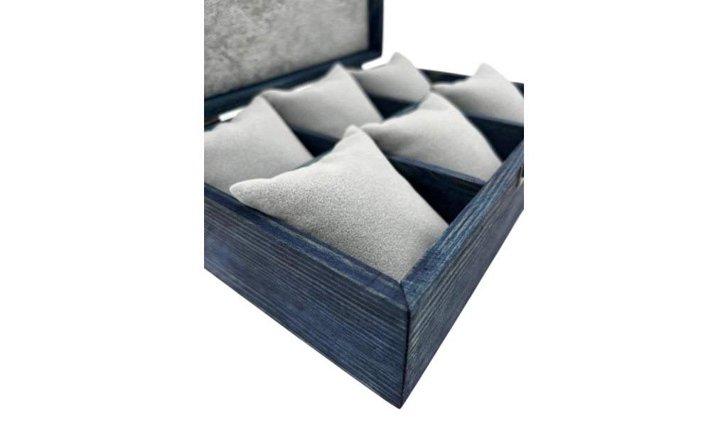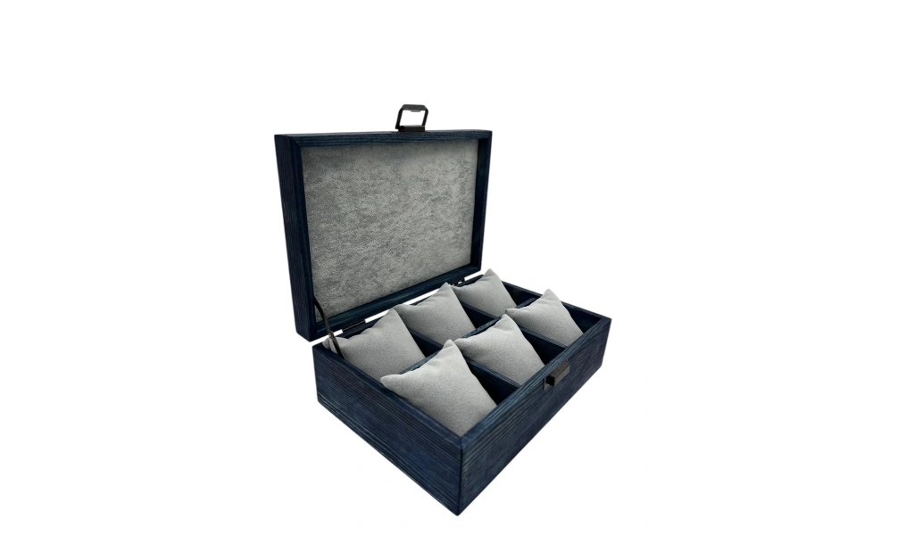 Ahşap El Boyaması Çift Renk 17x24 Cm Deri Kapak 6 Bölmeli Takı Standı