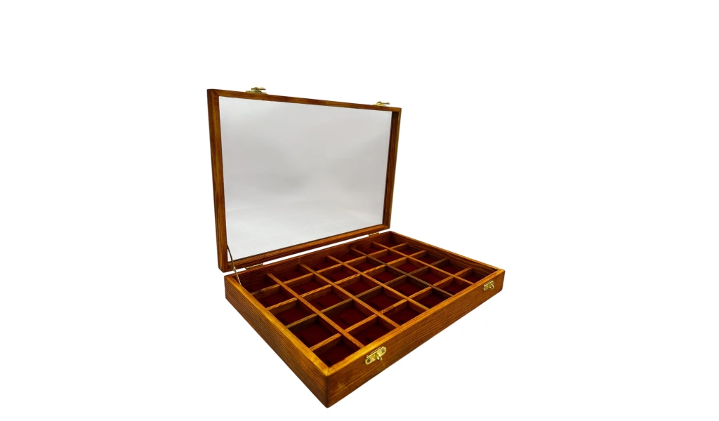 Ahşap El Boyaması Çift Renk 24x34 Cm Cam Kapak Çıtalı Yüzük Standı 30 Adeet Ürün Kullanımı İçin Uygundur