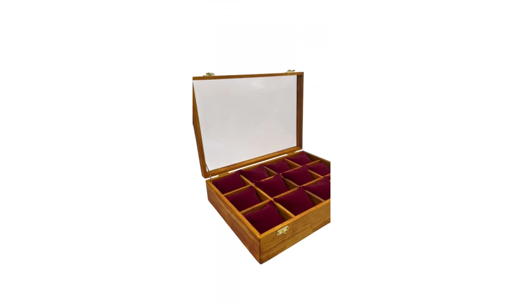 Ahşap El Boyaması Çift Renk 24x34 Cm Cam Kapak Yastıklı Stand 12 Adet Yastık Bileklik Kelepçe Saat Ürün Kullanımı İçin Uygundur