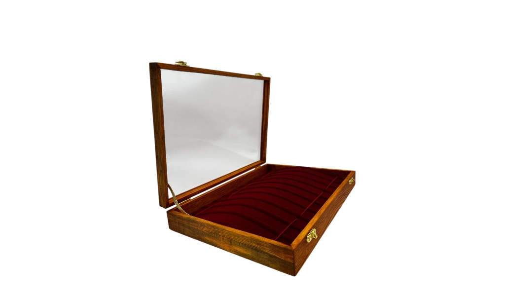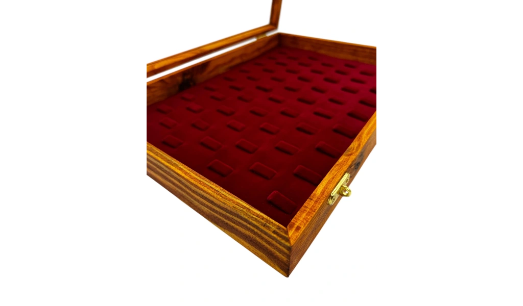 Ahşap El Boyaması Çift Renk 24x34 Cm Cam Kapak Yüzük Standı 60 Adet Ürün Kullanımı İçin Uygndur