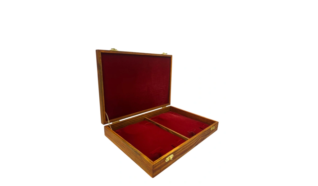 Ahşap El Boyaması Çift Renk 17x24 Cm Deri Kapak Yasttıklı Takı Standı