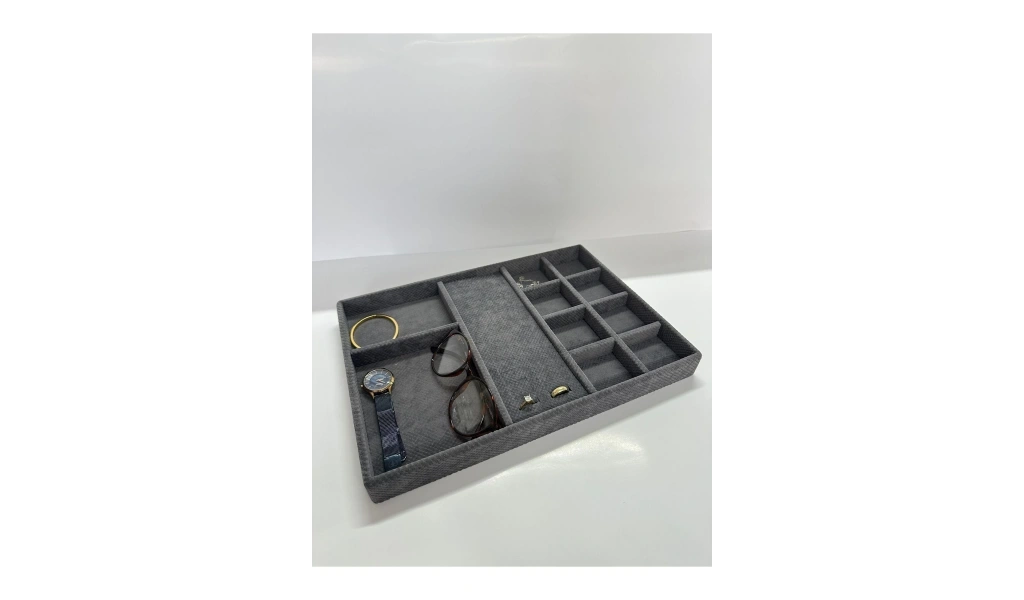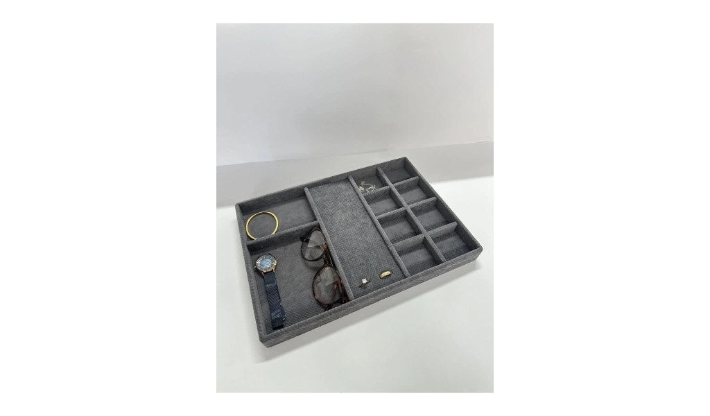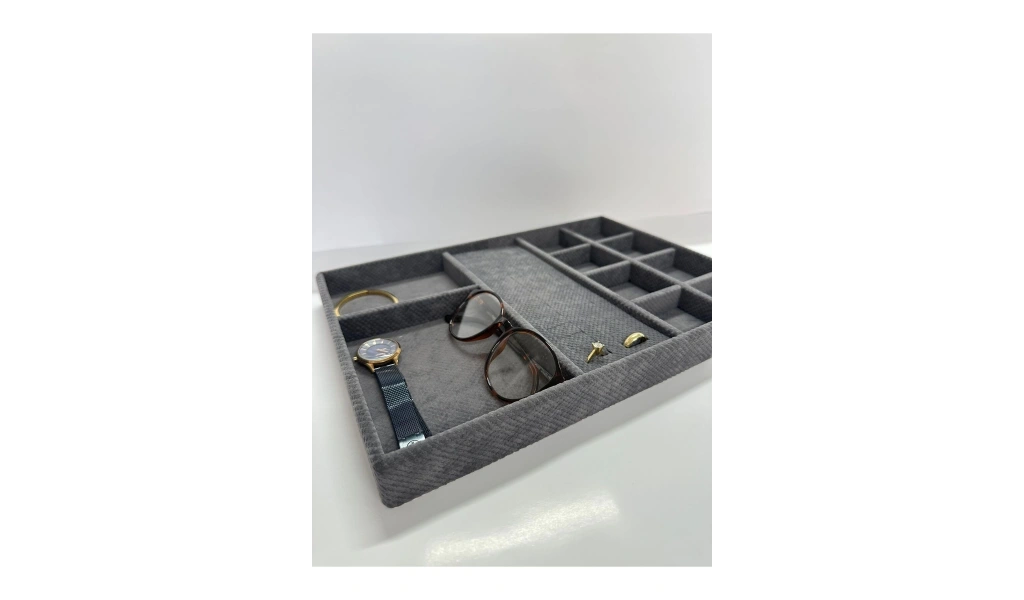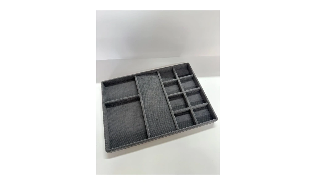 Yerli üretim Ankara modeli, kaliteli ve dayanıklı kumaş malzemesiyle üretilmiştir; Füme rengi, şık ve modern bir görünüm sunarak dolap içi düzeninizi estetik bir şekilde tamamlar; Çekmece içi takı standı, takılarınızı düzenli ve kolay erişilebilir hale getirir; böylece her zaman ihtiyacınız olanı bulmanız daha pratik olur; Kumaş yapısı sayesinde hafif ve taşıması kolaydır; istediğiniz yere rahatça yerleştirebilirsiniz;