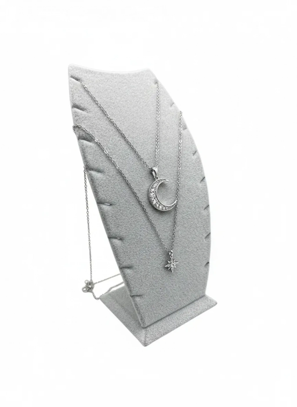 Dubai Model Süet Kumaş Gri Renk 18/9 Cm Kolye - Zincir Ayaklı Stand
