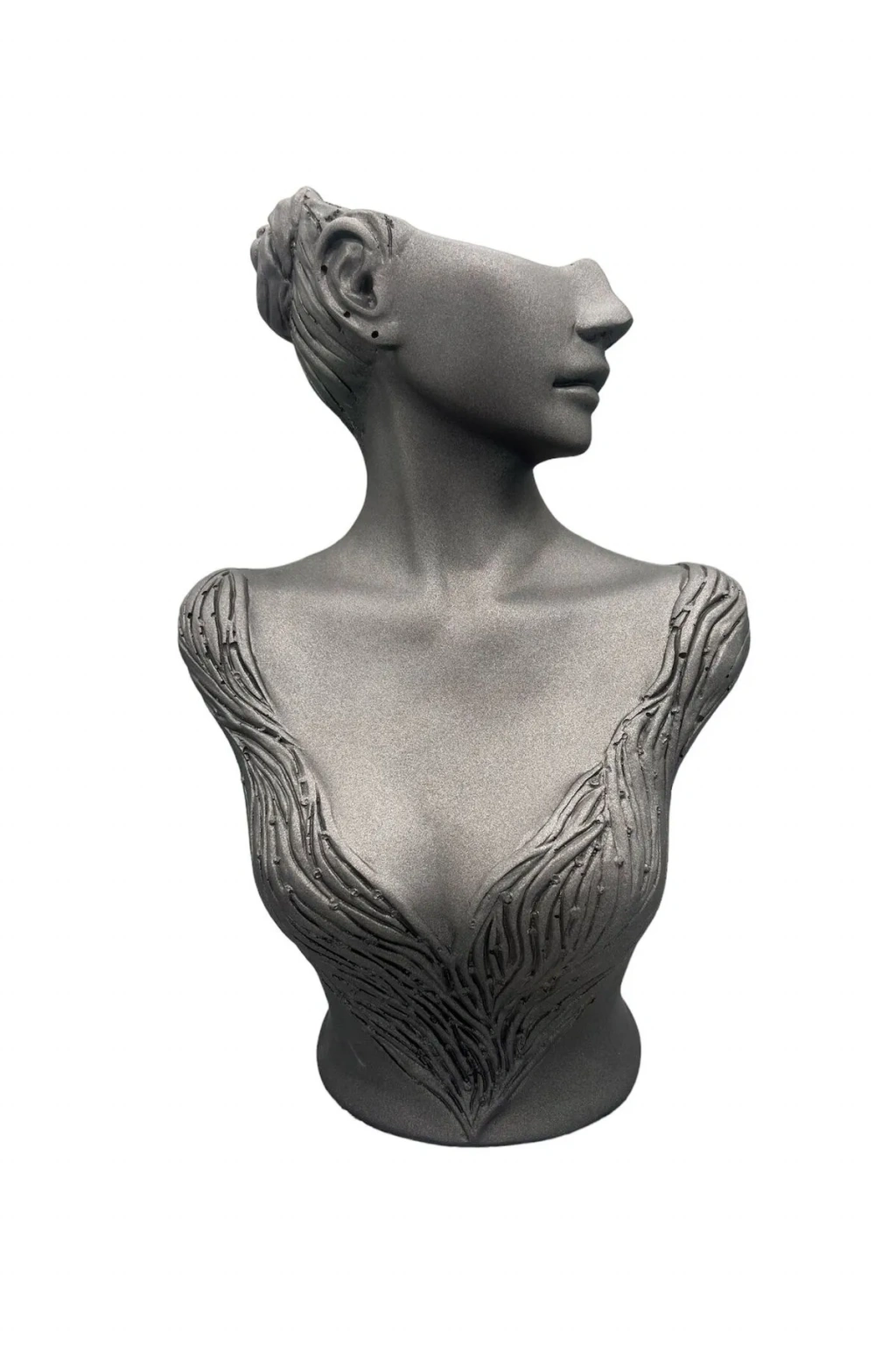 - Yerli üretim polyester malzeme kullanılarak üretilmiş, dayanıklı ve uzun ömürlü bir yapıya sahiptir; - Gri renk seçeneğiyle modern ve şık bir görünüm sunar, her türlü takı sergileme mankeni için idealdir; - 40 cm yükseklik ve 25 cm genişlik boyutları, çeşitli takı türleri için yeterli alan sağlar ve kolay kullanım imkanı sunar; - Platinyum kaplama detayları ile parlak ve göz alıcı bir parlaklık kazandırarak takıların daha dikkat çekici görünmesini sağlar;