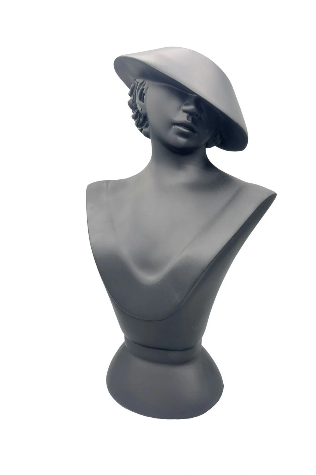Ürünün Özellikleri: Malzeme: Polyester boyalı Boyalı Boyutları : Boy: 45 cm En: 28 cm Derinlik : 10 cm Renk: Siyah Açıklama: 1 adet kolye ve 1 adet küpe kombin takılarınızı sergileme ve fotoğraf çekim mankenidir.