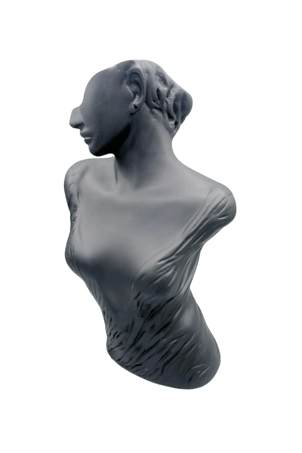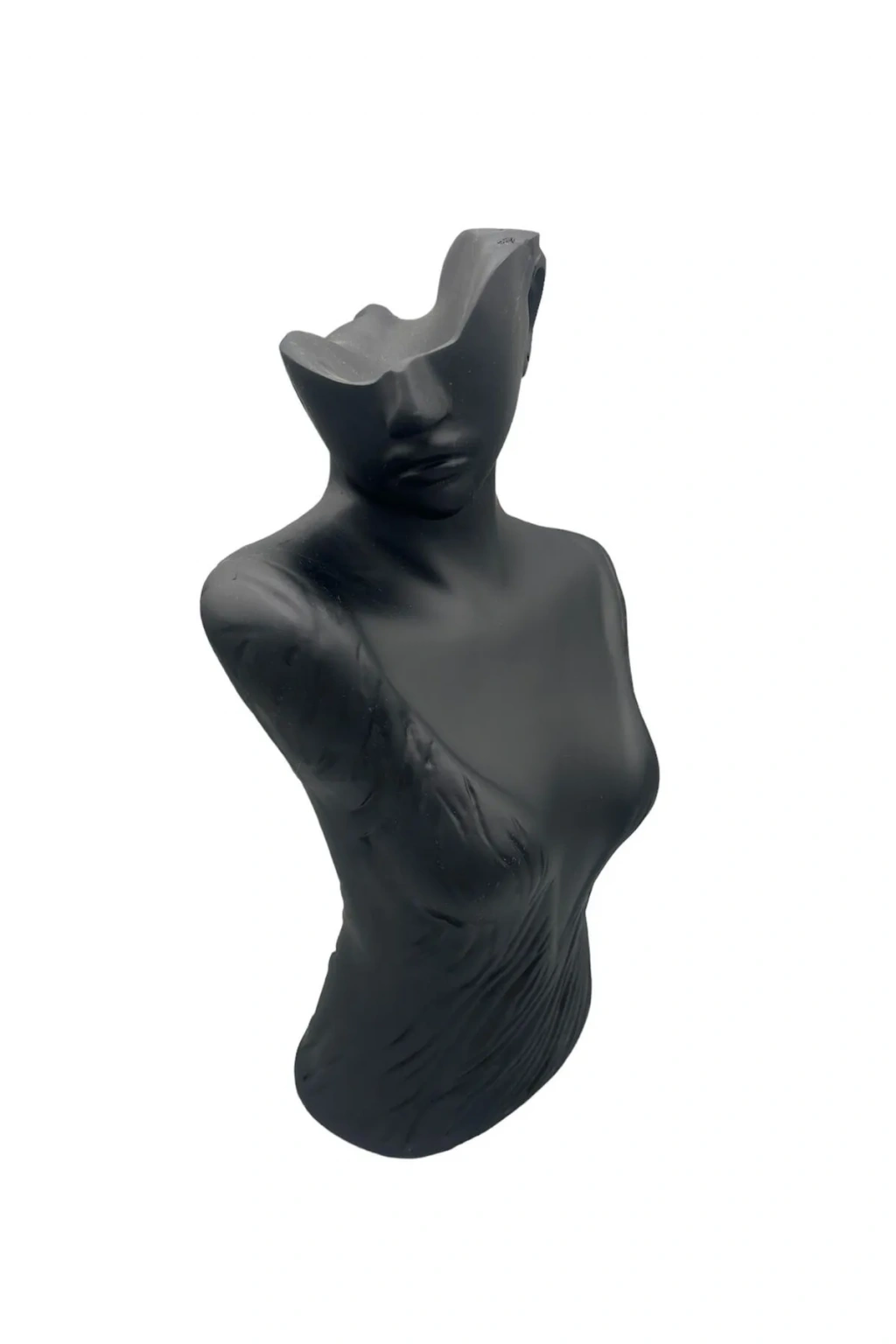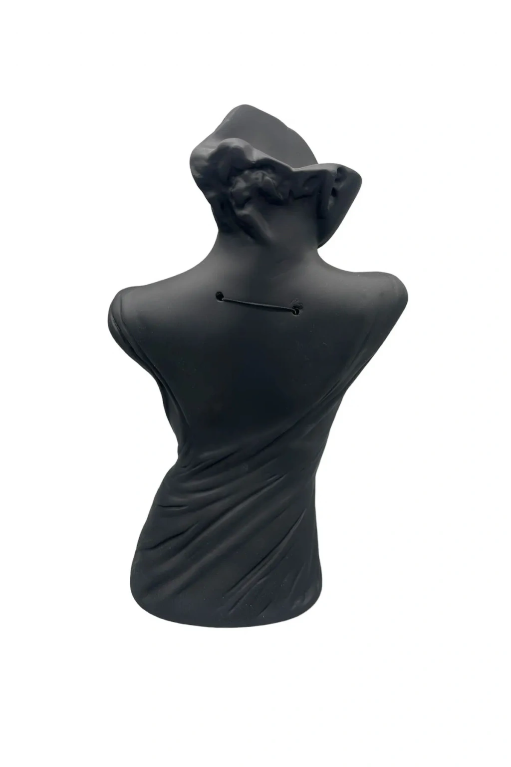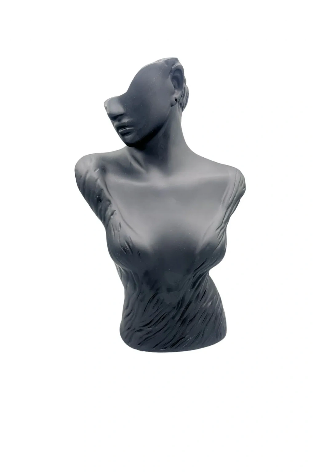 Yerli üretim polyester malzeme kullanılarak üretilmiş, dayanıklı ve uzun ömürlü bir yapıya sahiptir; Siyah renk seçeneğiyle şık ve modern bir görünüm sunar, her türlü takı sergileme mankeni için idealdir; 48 cm yüksekliği ve 28 cm genişliği ile geniş bir kullanım alanı sağlar, farklı boyutlardaki takıları rahatça sergilemenize olanak tanır; Platinyum kaplama detayları ile zenginleştirilmiş yüzeyi, takılarınızın daha parlak ve dikkat çekici görünmesini sağlar;