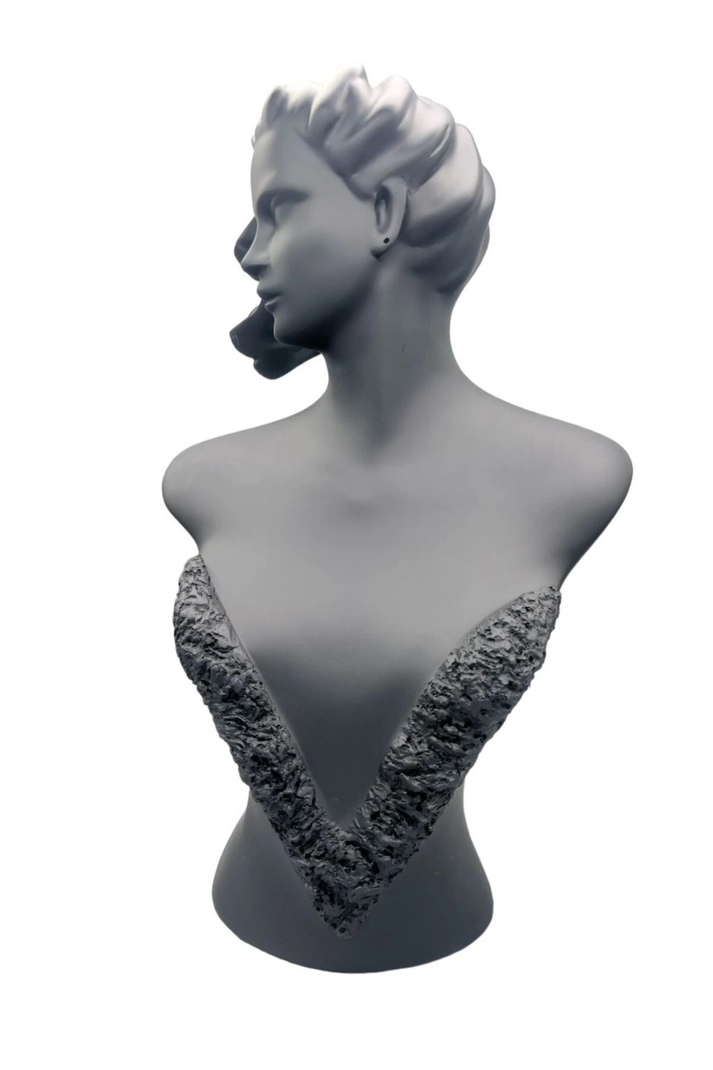Ürünün Özellikleri: Malzeme: Polyester boyalı Boyalı Boyutları : Boy: 51 cm En: 28 cm Derinlik : 10 cm Renk: Siyah Açıklama: 1 adet kolye ve 1 adet küpe kombin takılarınızı sergileme ve fotoğraf çekim mankenidir.