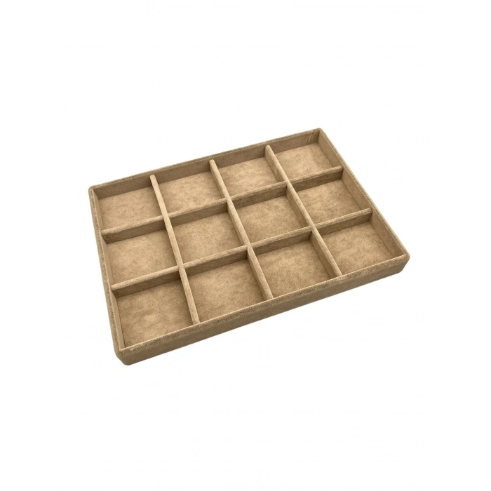 Canada Model Süet Kumaş Krem Renk 34 Cm / 24 Cm 12 Bölmeli Çekmece Içi Takı Standı