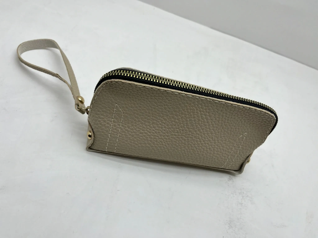 Deri Kumaş Krem Renk 17x10 Cm Takı-Makyaj Fermuarlı Çantası