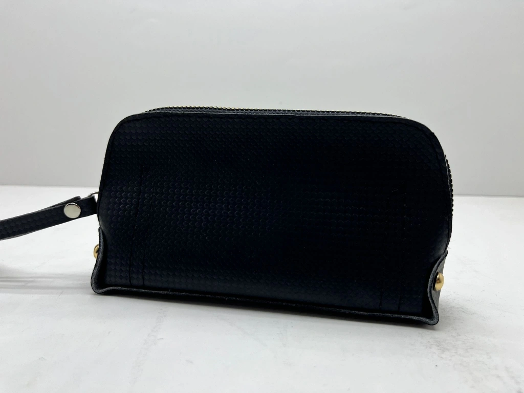 Deri Kumaş Siyah Renk 17x10 Cm Takı-Makyaj Fermuarlı Çantası