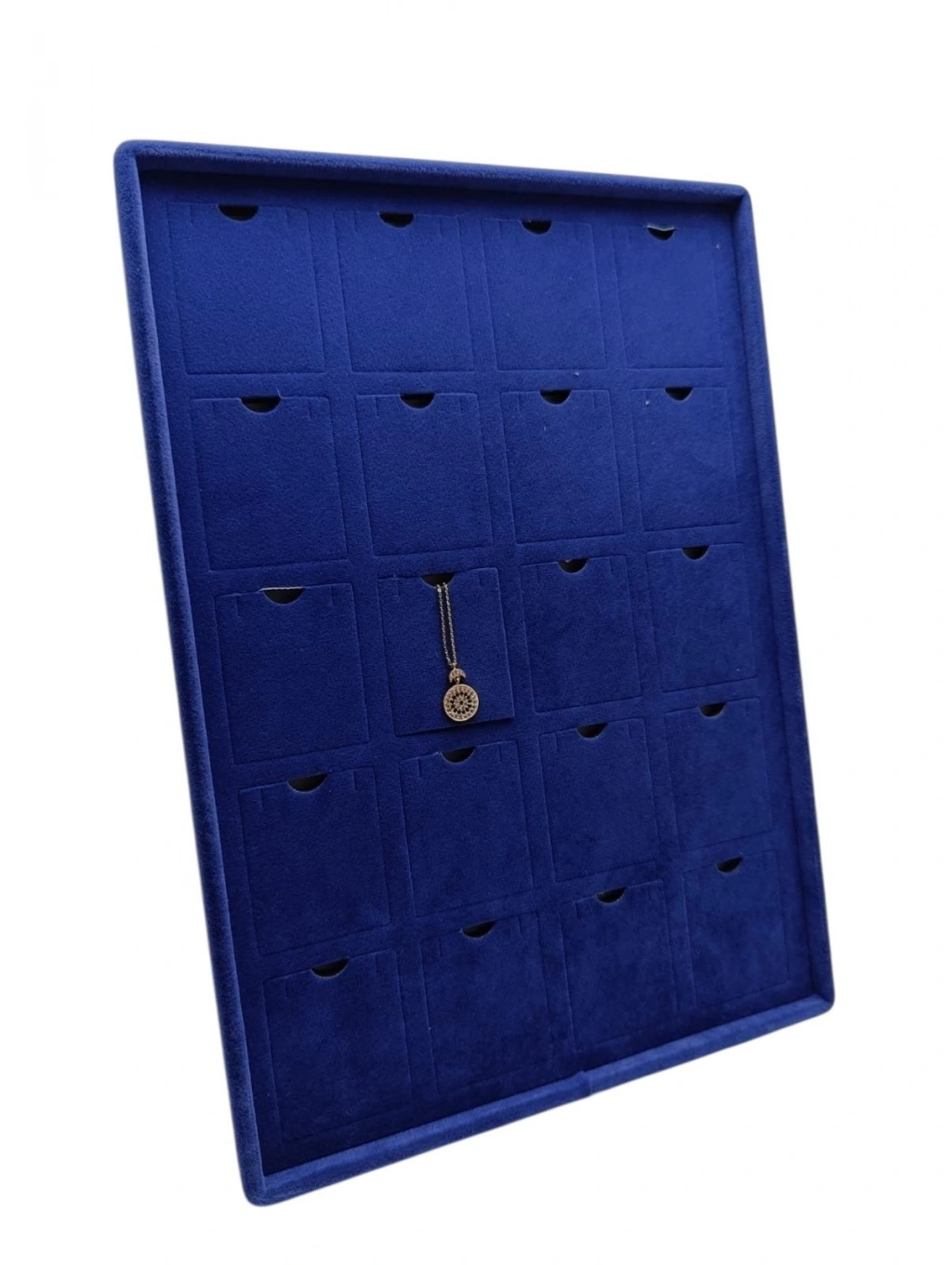 Dikine Süet Kumaş Lacivert 34-24 Cm Ayaklı 20 Pedli Kolye Tabla Stand