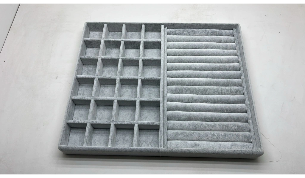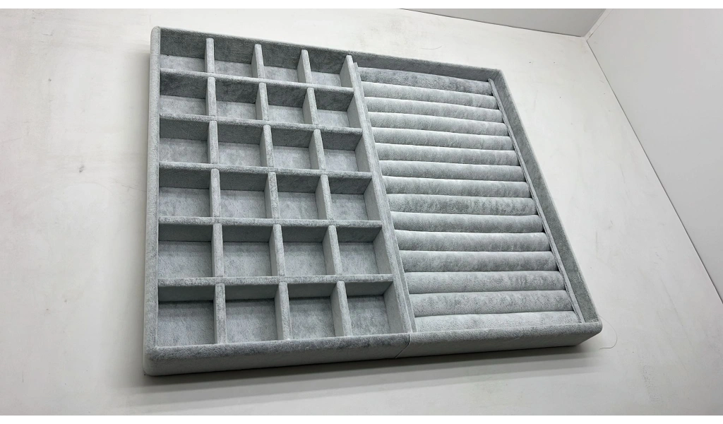 Özel sipariş Süet Kumaş 70/38 Cm Süet Kaplama Gri Renk Çekmece Içi Takı Düzenleyicisi