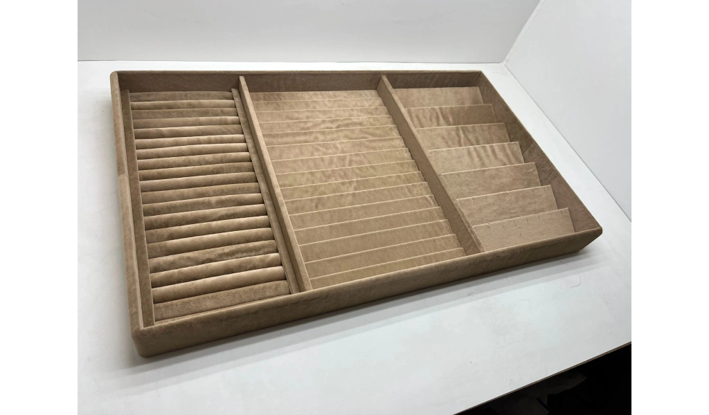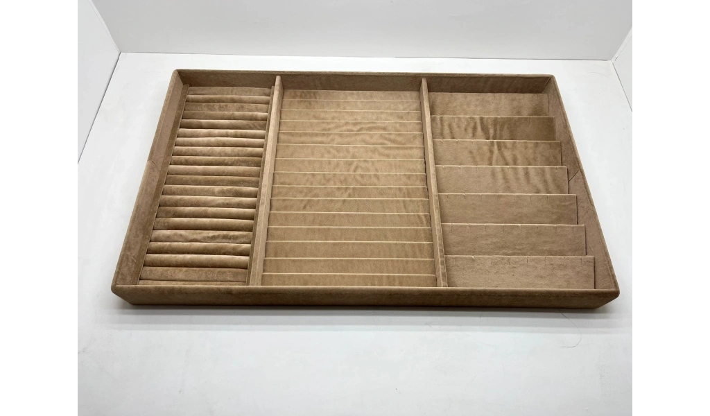 Özel Sipariş 70/38 Cm Süet Kaplama Sütlü Kahve Renk Çekmece Içi Takı Düzenleyicisi