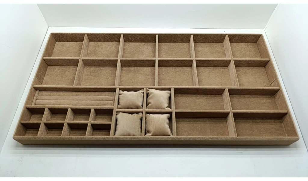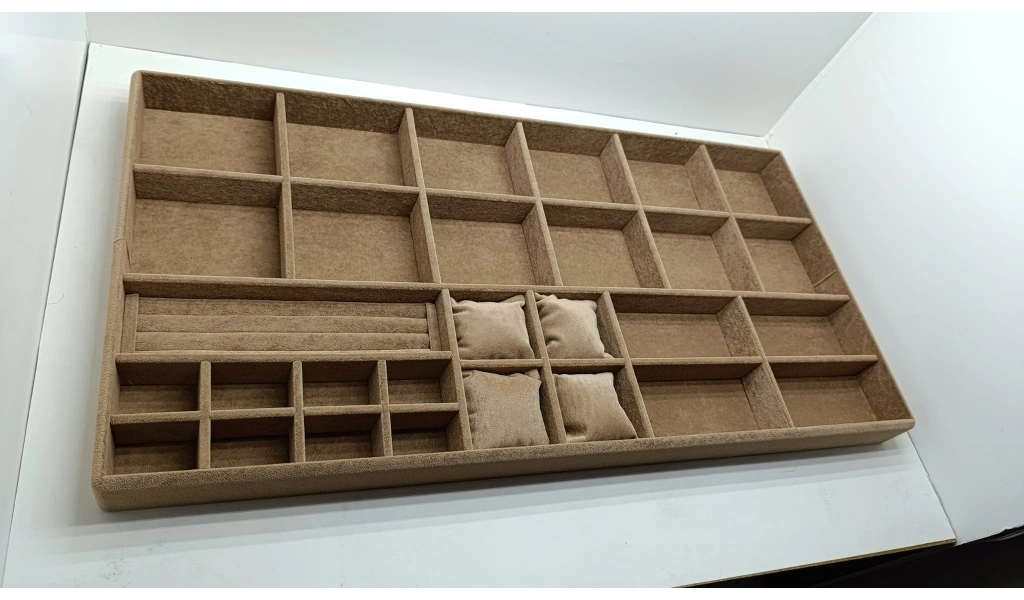 Özel Sipariş 70/38 Cm Süet Kaplama Sütlü Kahve Renk Çekmece Içi Takı Düzenleyicisi