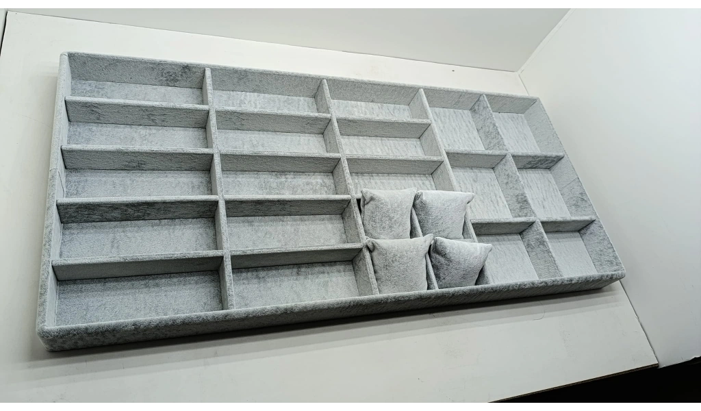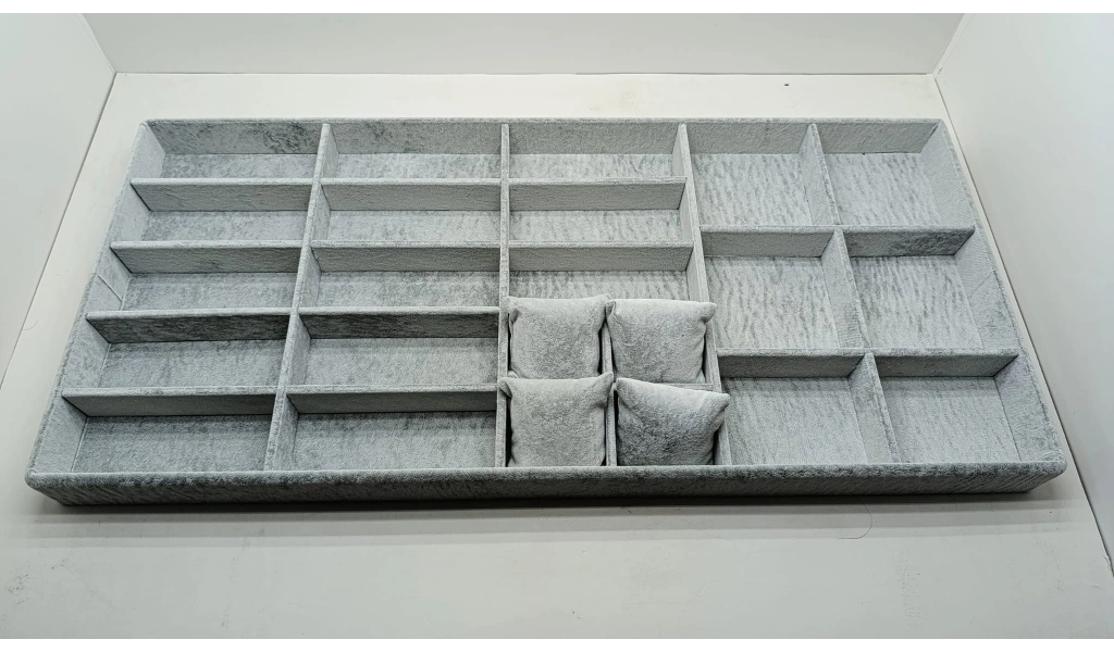 Özel sipariş Süet Kumaş 70/38 Cm Süet Kaplama Gri Renk Çekmece Içi Takı Düzenleyicisi