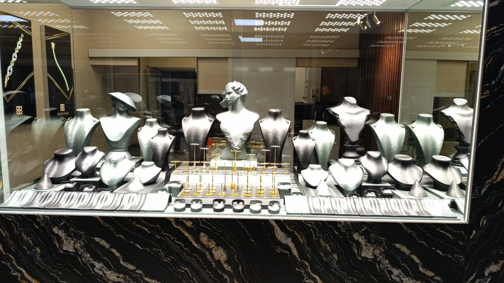 ÖZEL SİPARİŞ ÜZERİNE İSTENİLEN ÖLÇÜ VE MODEL DE KUYUMCU VİTRİN  TASARIM YAPILMAKTADIR.