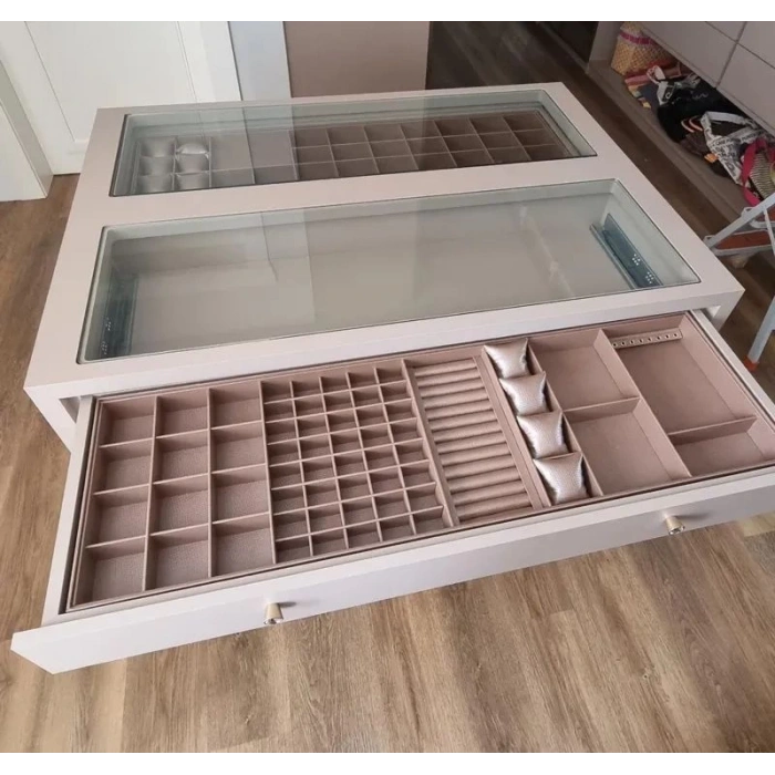 Özel Sipariş 70/38 Cm Süet Kaplama Sütlü Kahve Renk Çekmece Içi Takı Düzenleyicisi