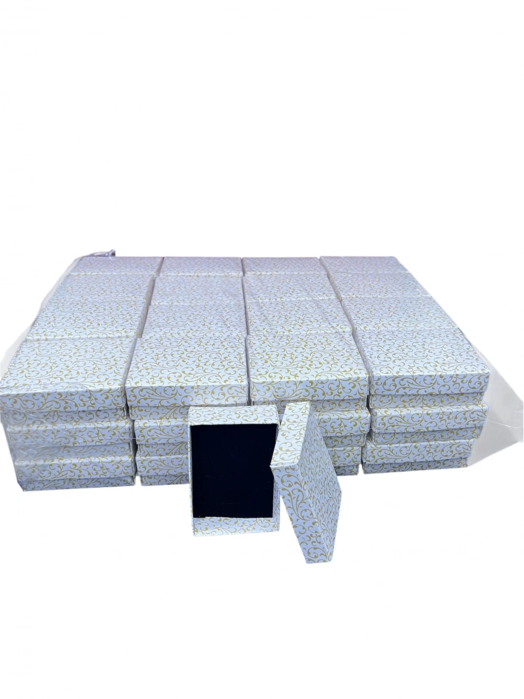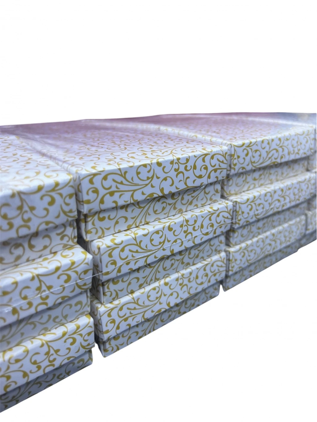 Karton Süngerli Beyaz Gold Çizgili Renk 8/6 cm 48 Adet Üçlü Set Takı Kutusu