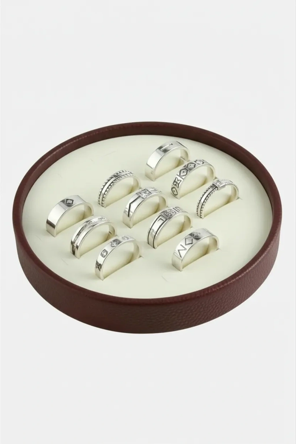 Silindir Model Deri Kumaş Bordo Renk 20/20 cm Batırmalı Yüzük Tablası