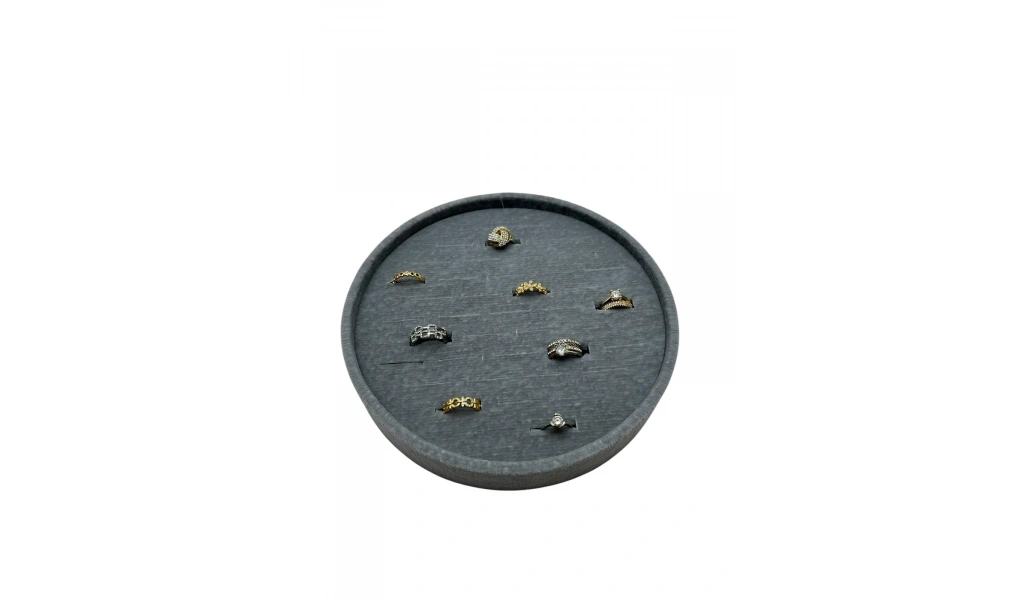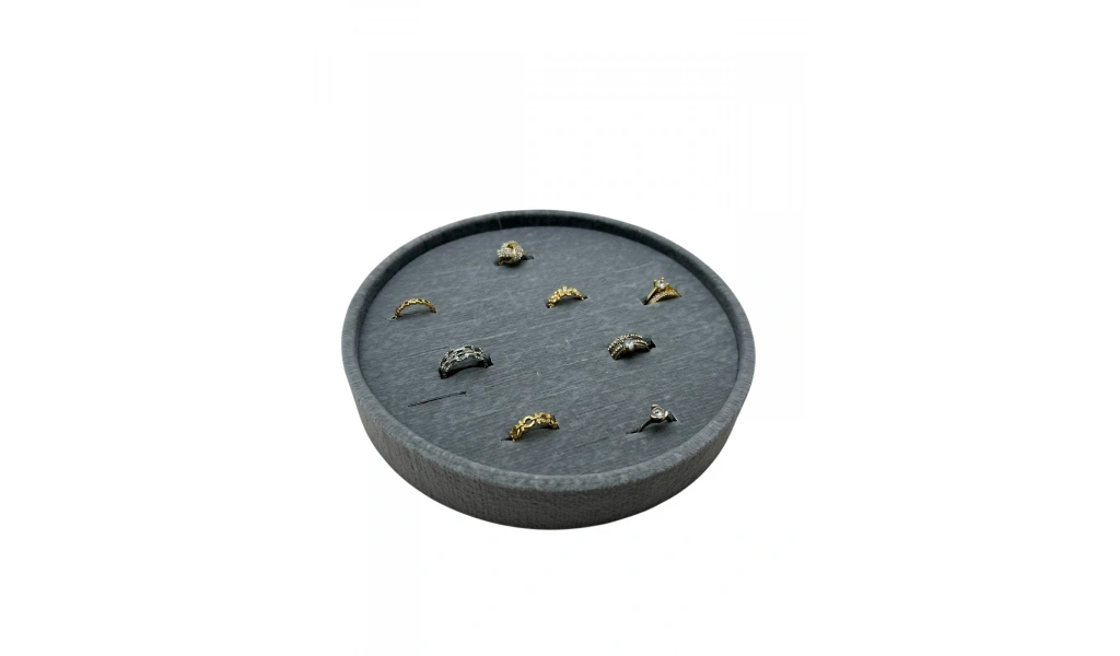 Silindir Model Deri Kumaş Gri Renk 20/20 cm Batırmalı Yüzük Tablası