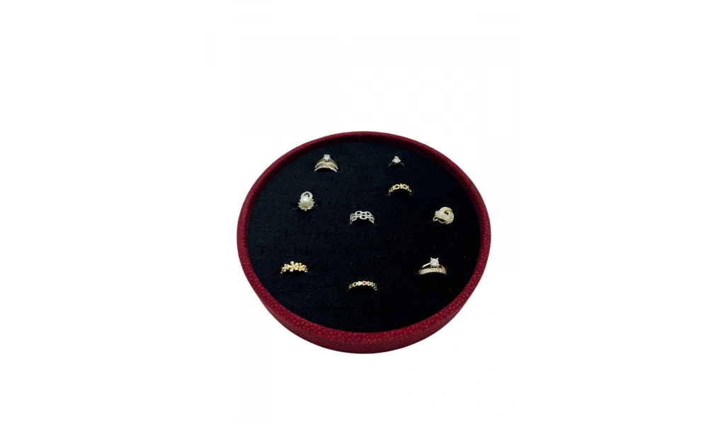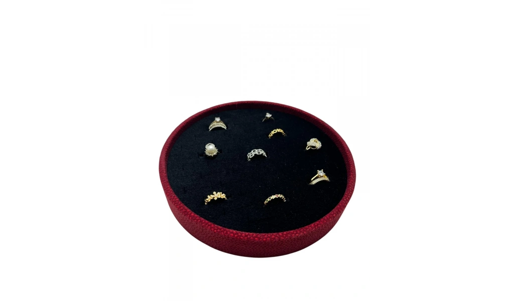 Silindir Model Deri Kumaş Bordo Renk 20/20 cm Batırmalı Yüzük Tablası