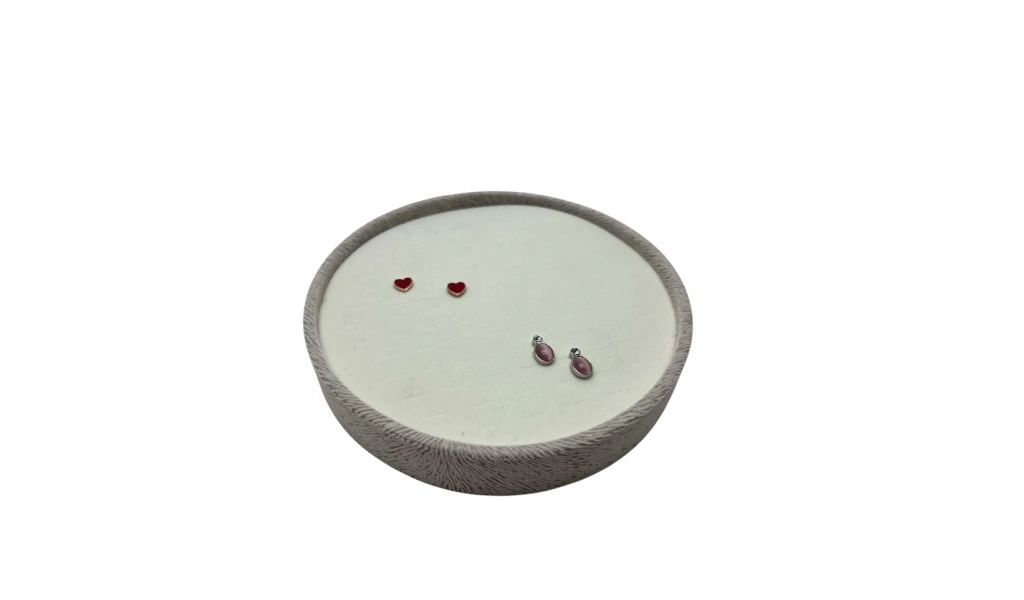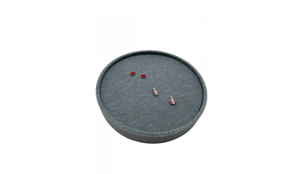 MeGass Dekor Silindir Model Süet Kumaş Gri Renk 20/20 cm Batırmalı Küpe-Piercing Tablası. Takılarınızı şık bir şekilde sergilemek için ideal.