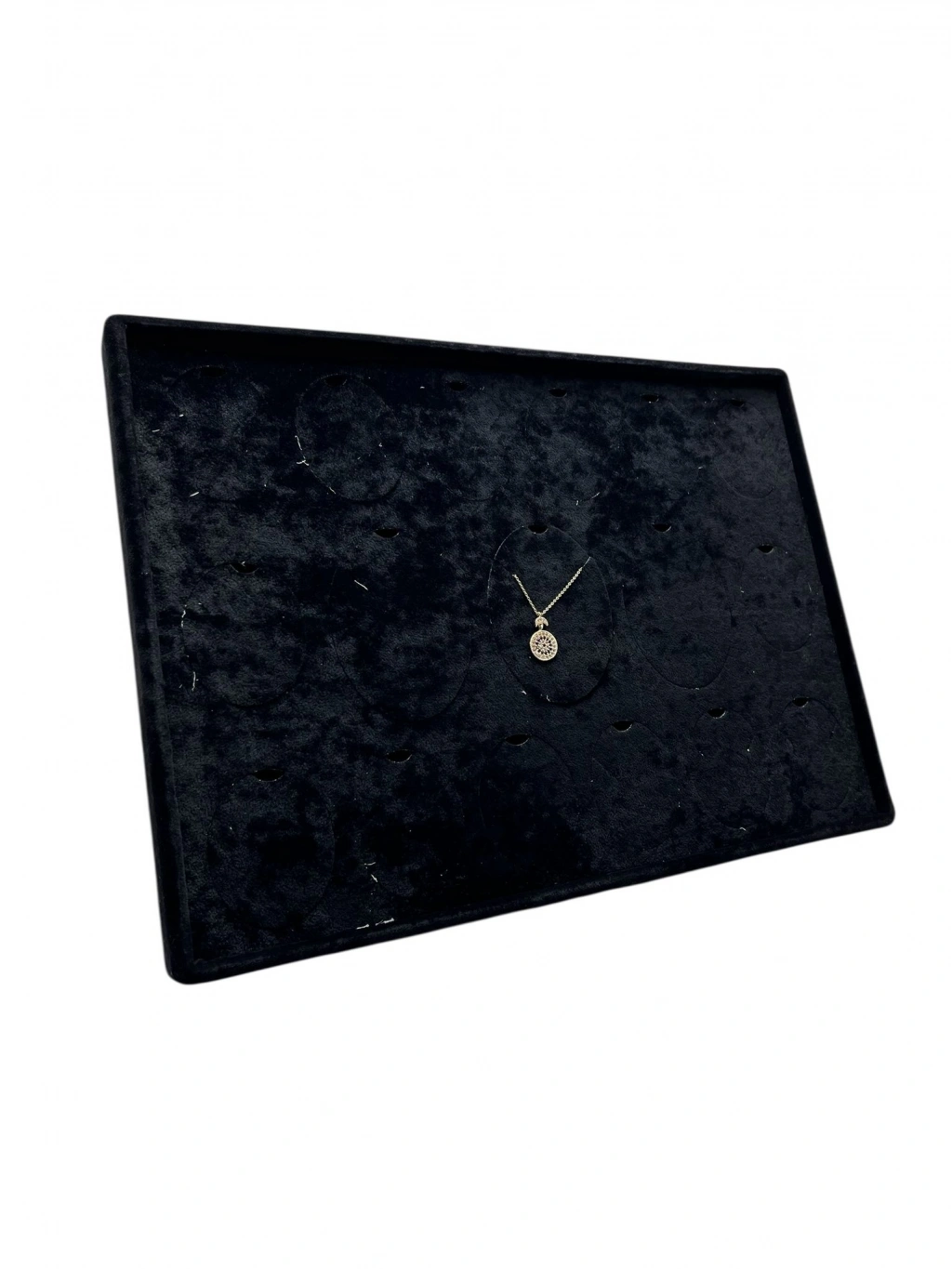 Süet Kumaş Siyah 34-24 Cm Ayaklı 17 Pedli Kolye Tabla Stand