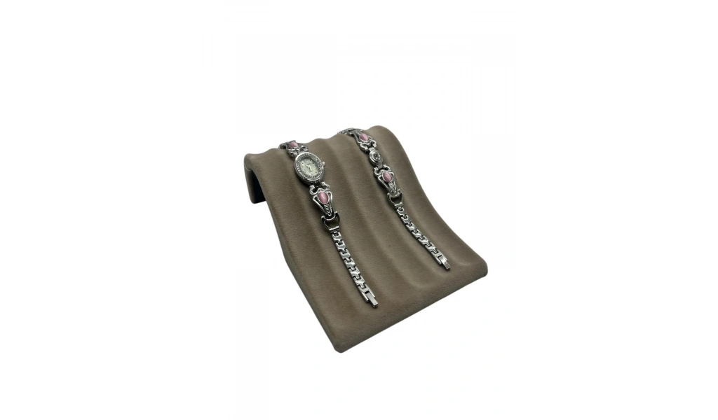 Bombeli Süet Kumaş Füme Renk 20/24 Cm Ayaklı Kancalı Bileklik Sergileme Standı