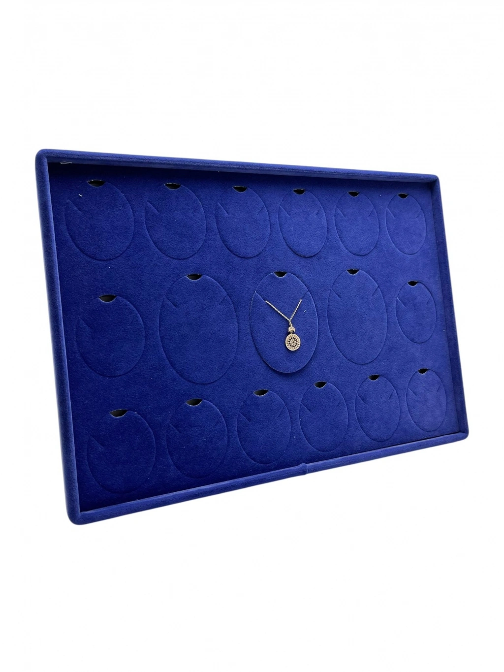 Süet Kumaş Lacivert 34-24 Cm Ayaklı 17 Pedli Kolye Tabla Stand