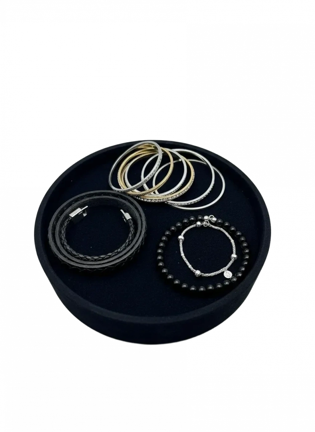 Süet Kumaş Siyah Renk 20x20 Cm Yuvarlak Batırmalı Bileklik Kelepçe Tablası