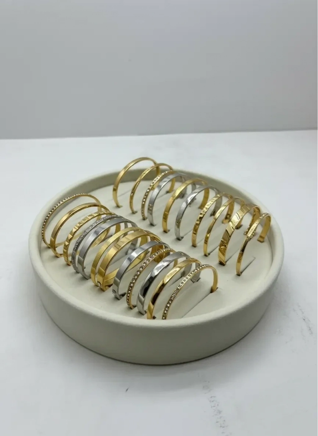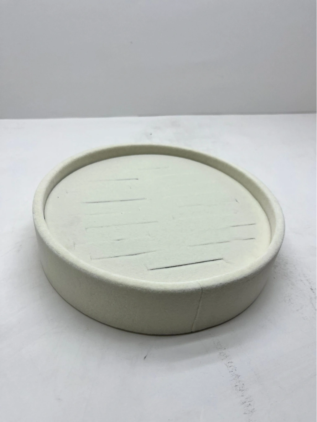 Süet Kumaş Krem Renk 20x20 Cm Yuvarlak Batırmalı Bileklik Kelepçe Tablası
