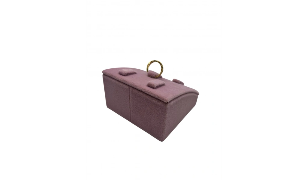 Süet Kumaş Pembe Renk 12/11 cm Çoklu Tırnaklı Yüzük Sergileme Aksesuar