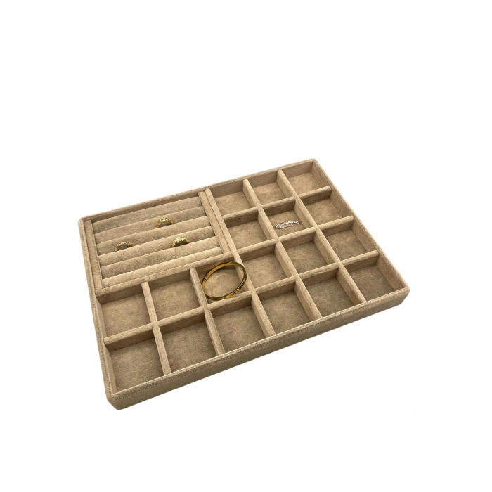 Bakü Model Süet Krem Renk 34/24 cm Bölmeli-Sosisli Çekmece Içi Takı Standı