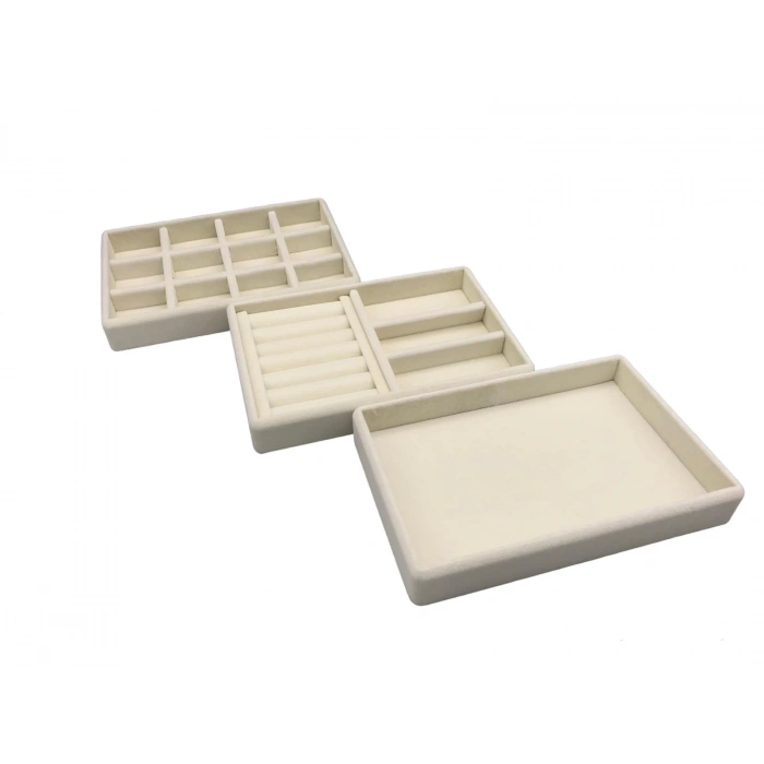 Süet Kumaş Krem Renk 3 lü Takım Çekmeçe İçi Takı Standı