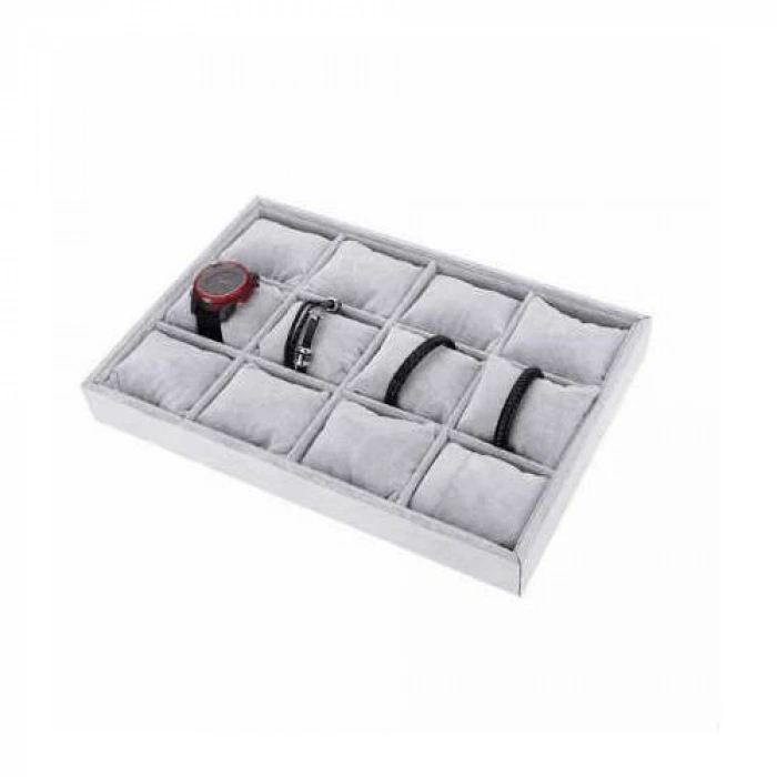 Süet Kumaş Gri Renk 34/24 Cm Batırmalı Çekmeçe Içi Bileklik Kelepçe Tablası