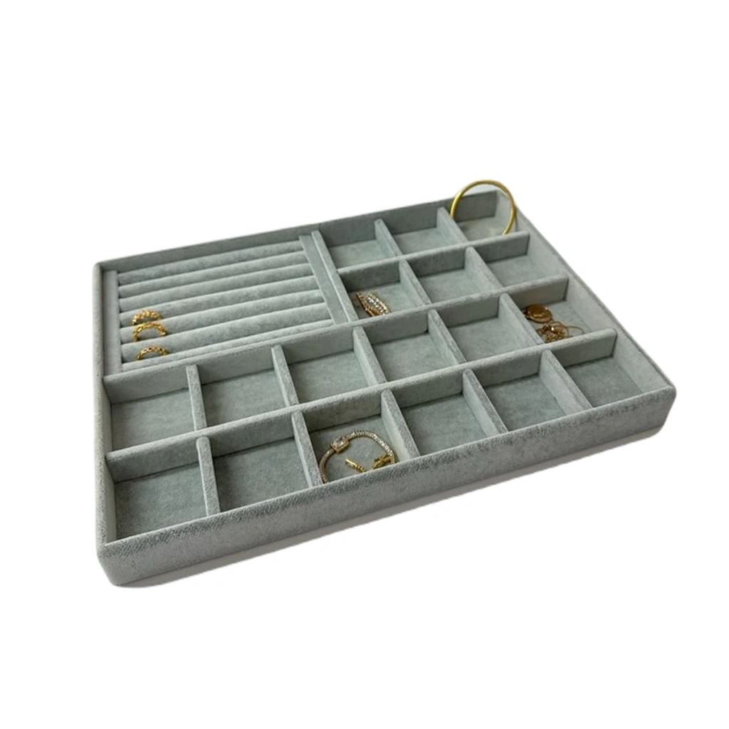 Yerli üretim, kaliteli kumaş malzemeden üretilmiş, dayanıklı ve uzun ömürlü kullanım sunar; Tek parça halinde gelen bu ürün, montaj gerektirmeyen pratik bir kullanım sağlar; Süet lacivert rengiyle şık ve modern bir görünüm kazandırırken, her türlü dekorasyona kolayca uyum sağlar; Bölmeli tasarımı sayesinde takılarınızı düzenli bir şekilde saklamanızı ve erişmenizi kolaylaştırır; Batırmalı çekmece mekanizması ile güvenli ve pratik bir kullanım sunar; eşyalarınızın kaymasını önler;