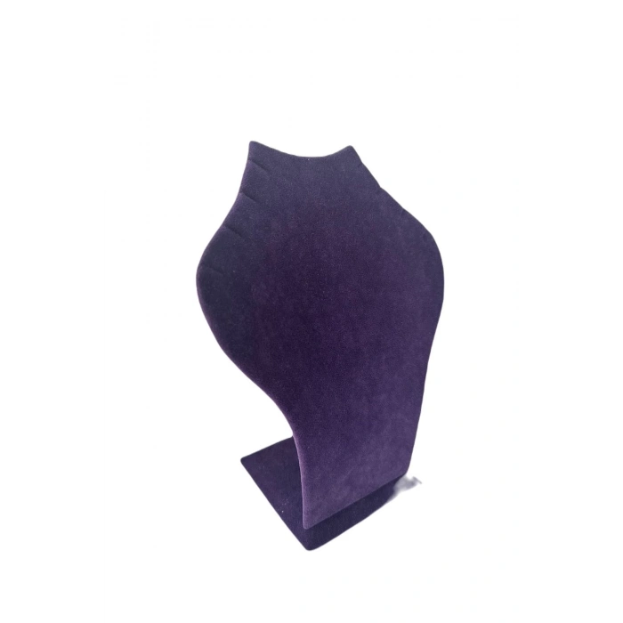 Yerli üretim süet mor kolye gerdanlık takı sergileme mankeni, mücevher ve takılarınızı şık bir şekilde sergilemek için ideal bir seçenektir; Kumaş materyali sayesinde hafif ve dayanıklı yapısıyla uzun süreli kullanım sunar; Tek parça halinde gelen bu ürün, kolayca monte edilebilir ve pratik bir kullanım sağlar;