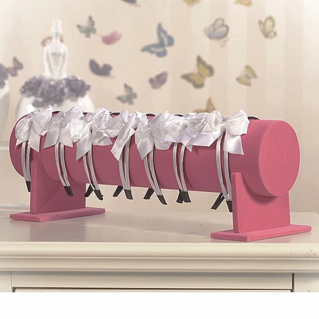 Ürünün Özellikleri :Malzemesi: Pimaş üzerine süet kaplama ; Boyutları : Çap : 11 cm  En: 50 cm Yükseklik : 17,5 cm ; Renk: Pembe ;  Kullanım Şekli : Taç toka saklama ve sergileme için kullanılmaktadir.