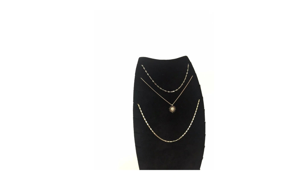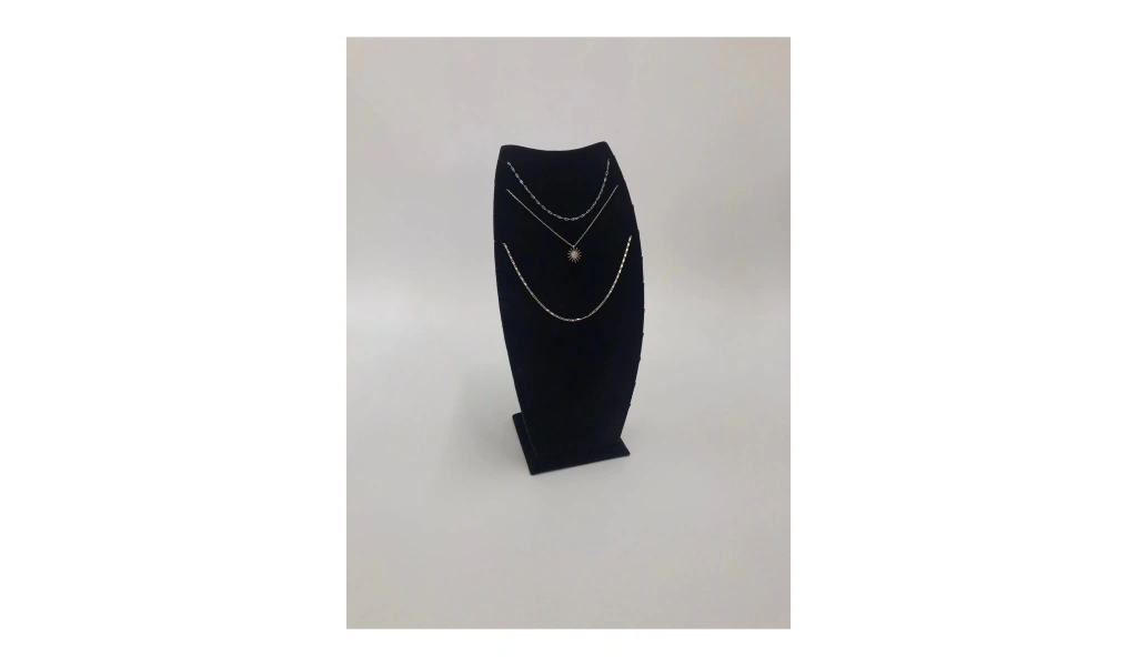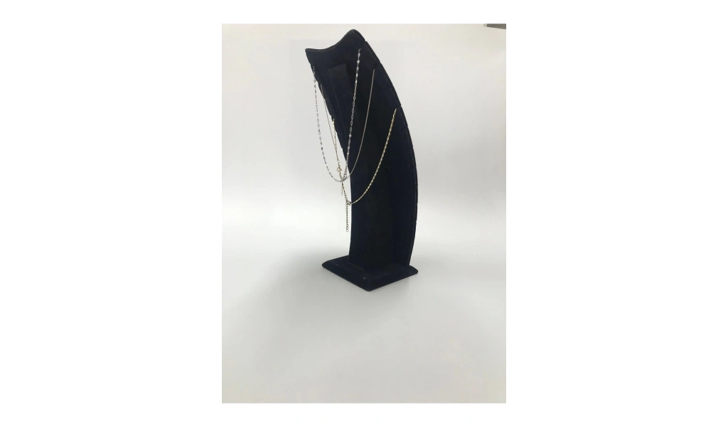 Malzemesi: Mdf üzerine süet kaplama · Boyutları : Boy: 25 cm En: 12 cm · Renk: Siyah · Kullanım Şekli : 11 Adet kolye veya zincir sergileme yapabilirsiniz
