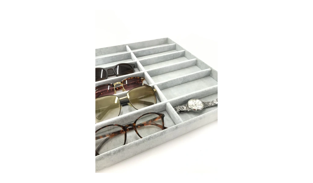 Havana Model Süet Kumaş Gri Renk 38 Cm / 36 Cm Gözlük Sergileme Çekmece Içi Stand