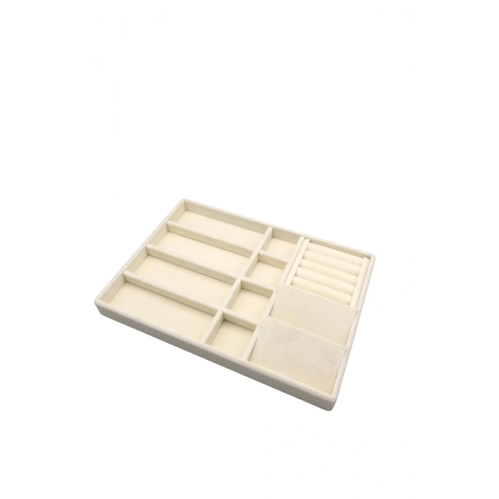Yerli üretim Helsinki modeli, krem rengi süet kaplaması ile çekmece düzeninizi şık bir dokunuşla tamamlar; Tek parça halinde gelen bu ürün, kolay kullanım ve pratik saklama imkanı sunar; Kumaş materyali sayesinde dayanıklılık ve uzun ömürlü kullanım vaat eder; Çekmece içinde takılarınızı düzenli bir şekilde saklamanız için idealdir; çoklu mix seçenekleriyle farklı takı türlerine uyum sağlar;