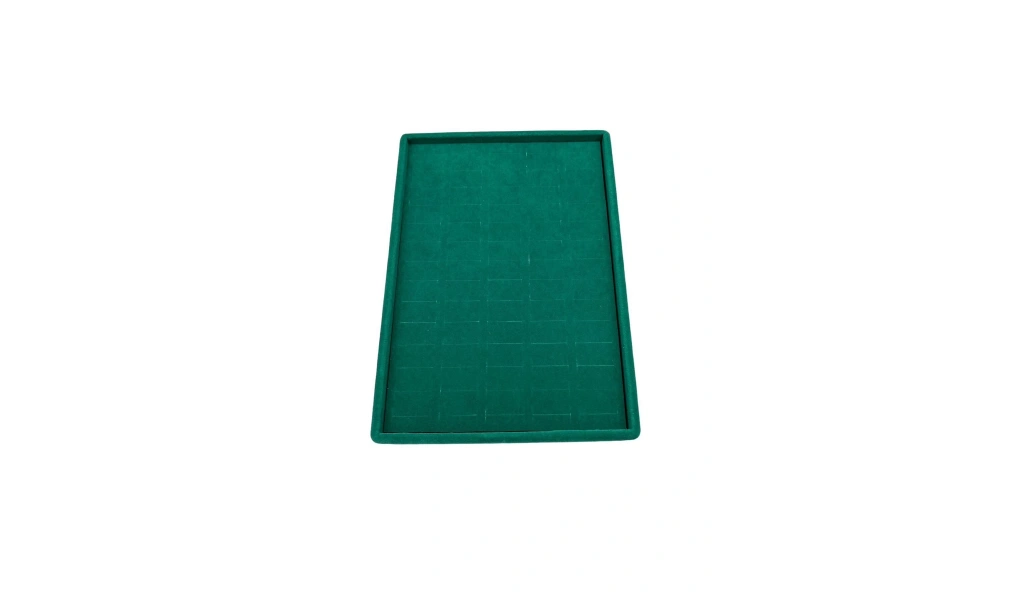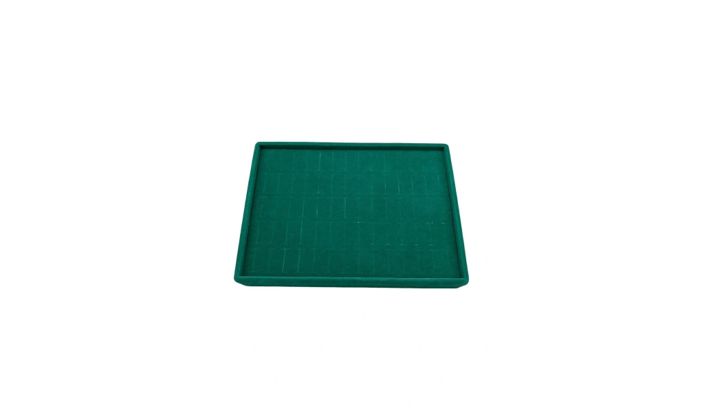 Ürünün Özellikleri : Malzemesi mdf üzerine süet kaplama ; Boyutları : Boy: 24 cm En: 17 cm Yükseklik : 3 cm ; Renk: Yeşil ; Kullanım Şekli : 70 adet yüzük küpe sergilenebilir.