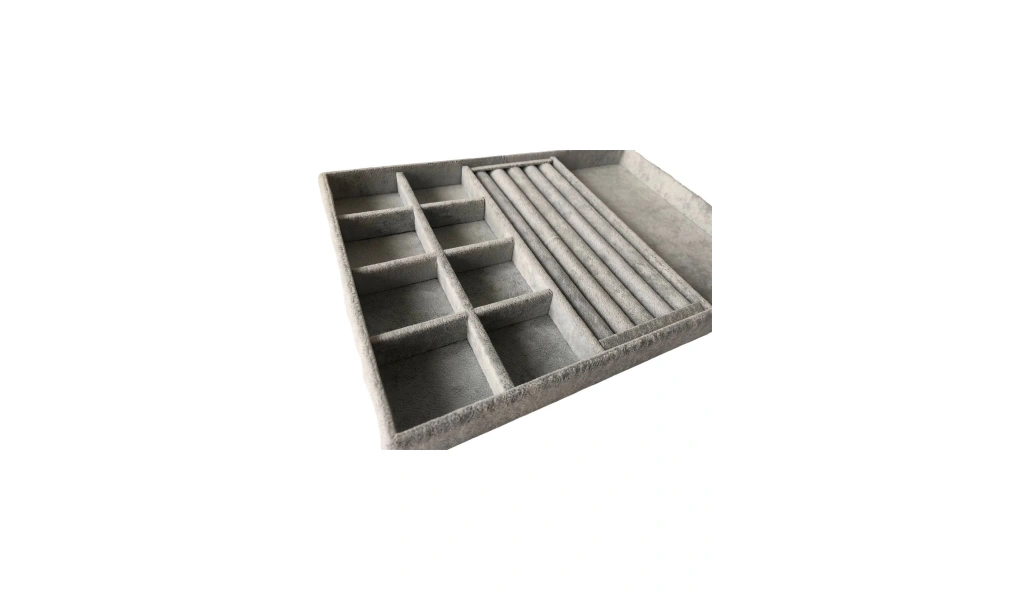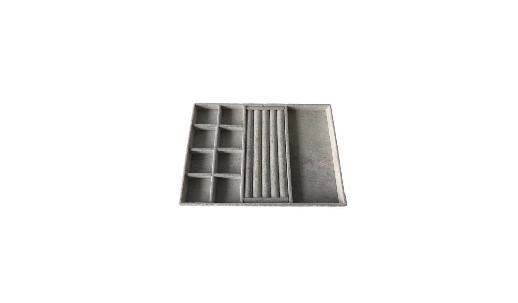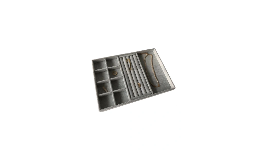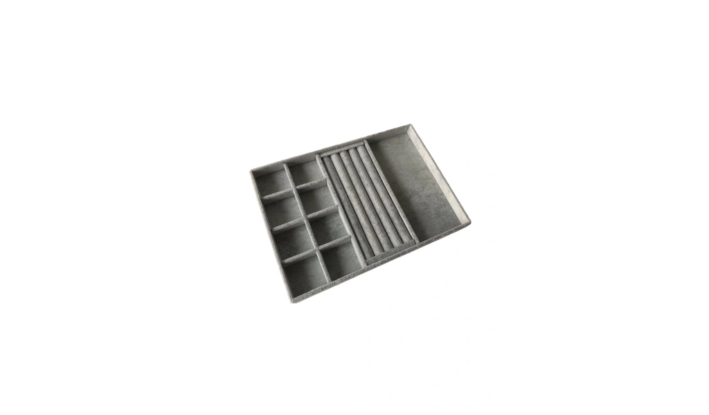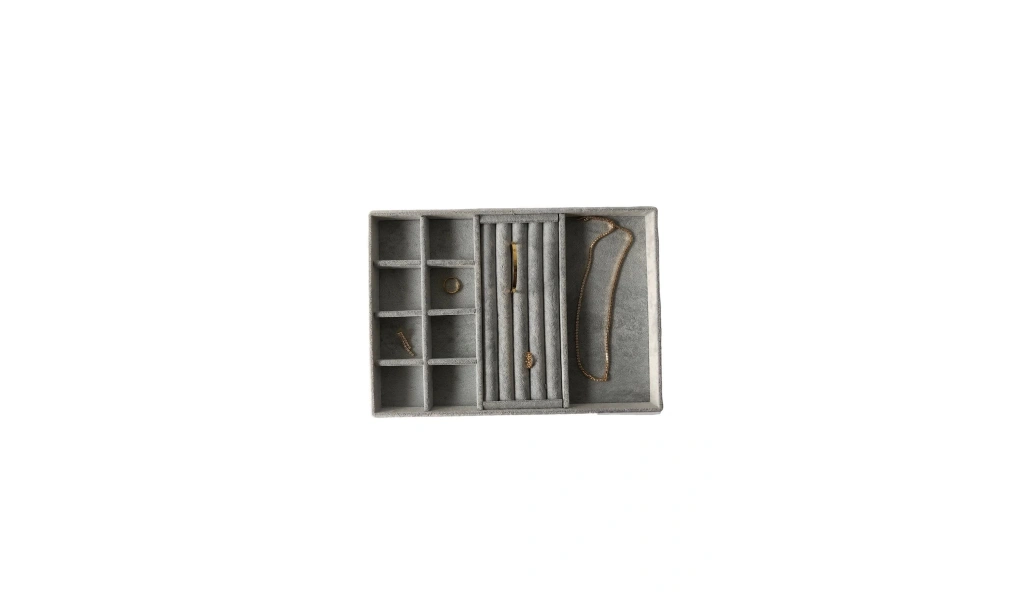 · Ürünün Özellikleri : Malzemesi mdf üzerine süet kaplama · Boyutları : Boy: 34 cm En: 24 cm Yükseklik : 3 cm · Renk: Gri Kullanım Şekli : ; Boş bölüme gözlüklerinizi orta kısıma yüzüklerinizi bölmeli kısımada küpe kolyelerınızı piercingleriniz için kullanabilirsiniz. ;