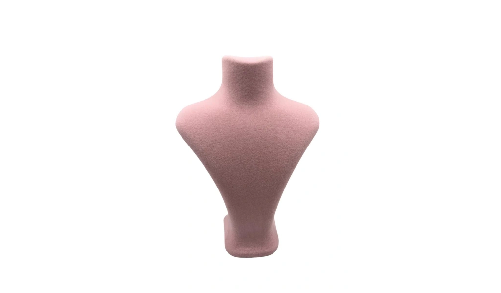 Ürünün Özellikleri ; ; Malzeme: Plastik üzerine süet kaplama ; Renk : Pembe ; ; Boyutları ; Boy: 22 cm ; En: 18 cm ; ; Kullanım Alanı : Kolye , Gerdanlık , Zincir sergilemek ve fotoğraf çekimi için idealdir.; ; Arkasında bulunan lastik sayesinde sergilemiş olduğunuz ürün manken üzerine kayma yapmaz ;