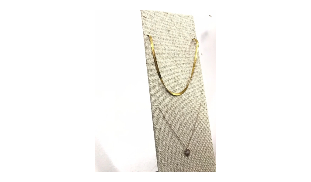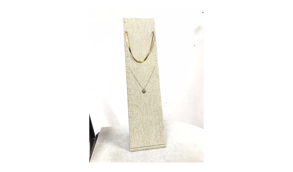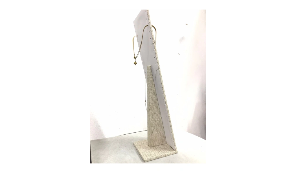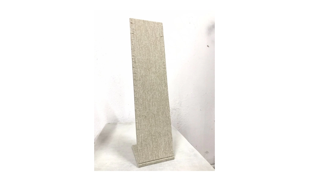 Malzemesi mdf üzerine keten kaplama · Boyutları : Boy: 40 cm En: 10 cm Renk: Hasır · Kullanım Şekli : 23 adet kolye veya zincir sergileme için kullanabilirsiniz. ;